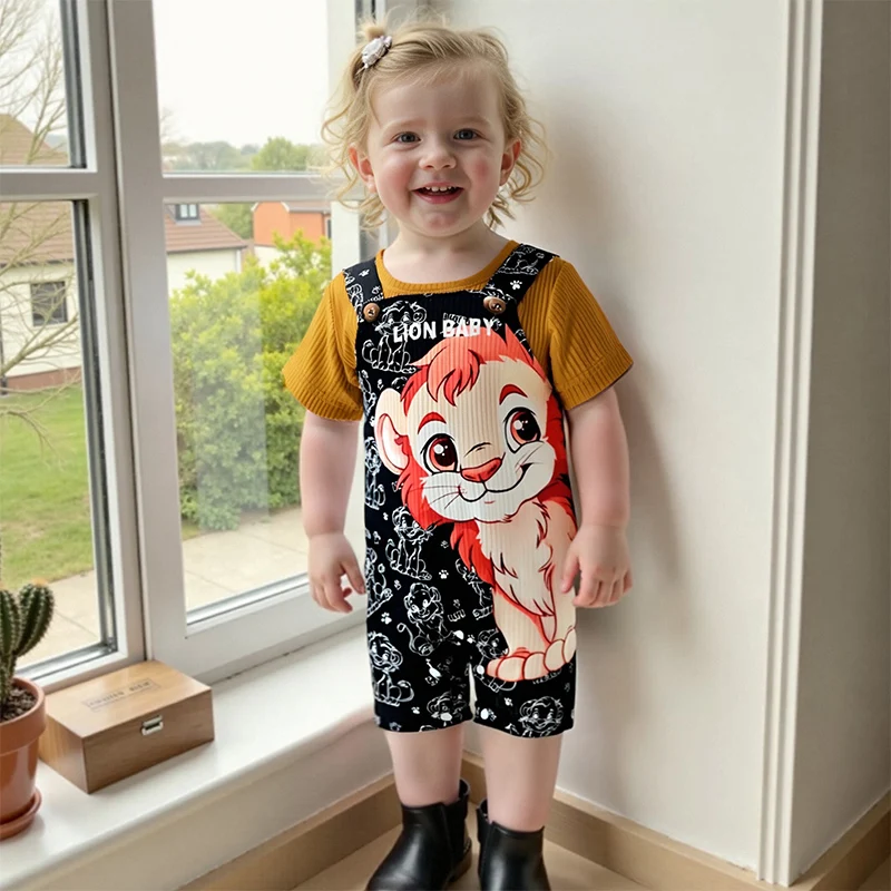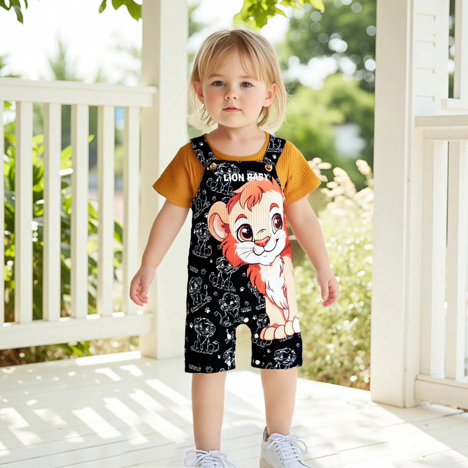 Baby Boy Outfit, Short Sleeve Crew Neck T-shirt with Cartoon Lion Print Overall Pants Summer Outfit