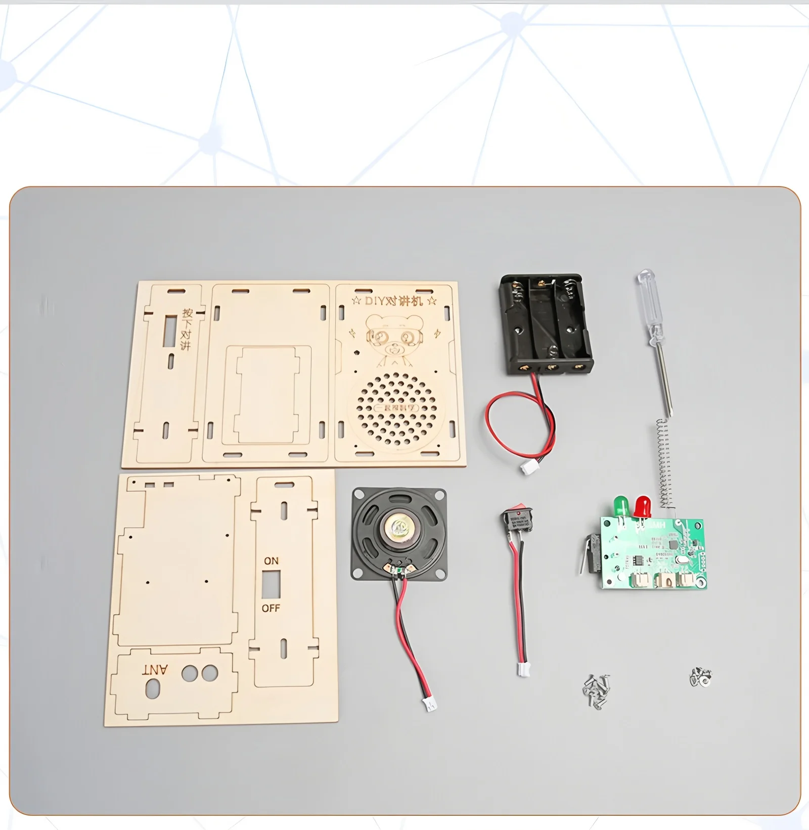This walkie-talkie features fully integrated half-duplex FM transmission and reception, automatic noise reduction, and an ultra-small size. It is a complete high-performance toy walkie-talkie.