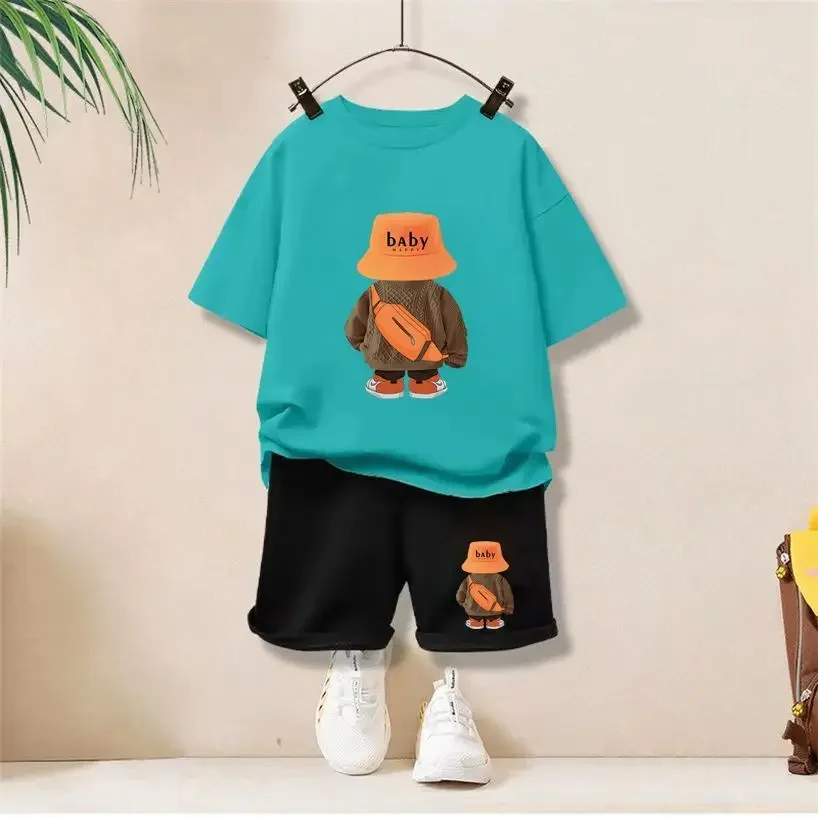 Summer Baby Girls Clothes Set Children Boy Cartoon Bear Tshirts and Shorts 2 Pieces Suit Kid Casual Top Bottom Outfit Tracksuit