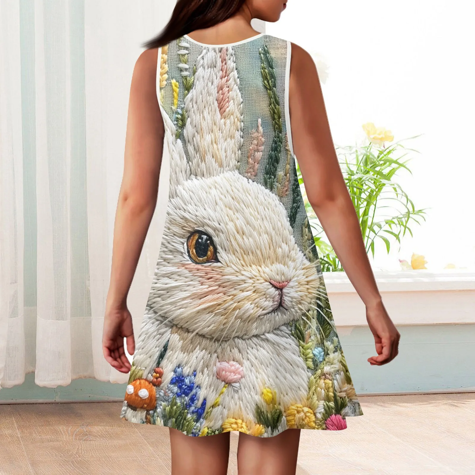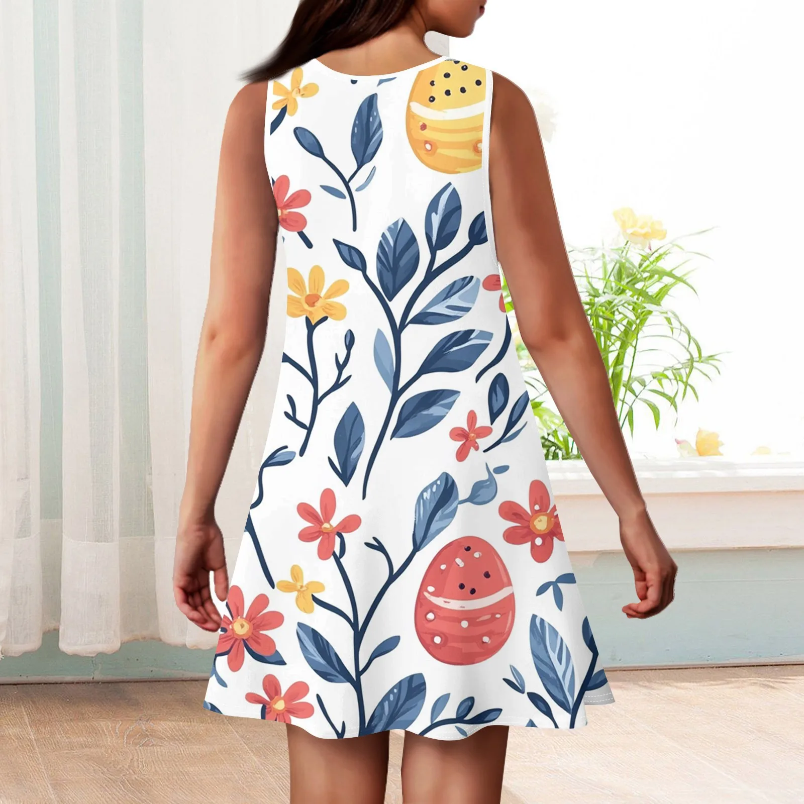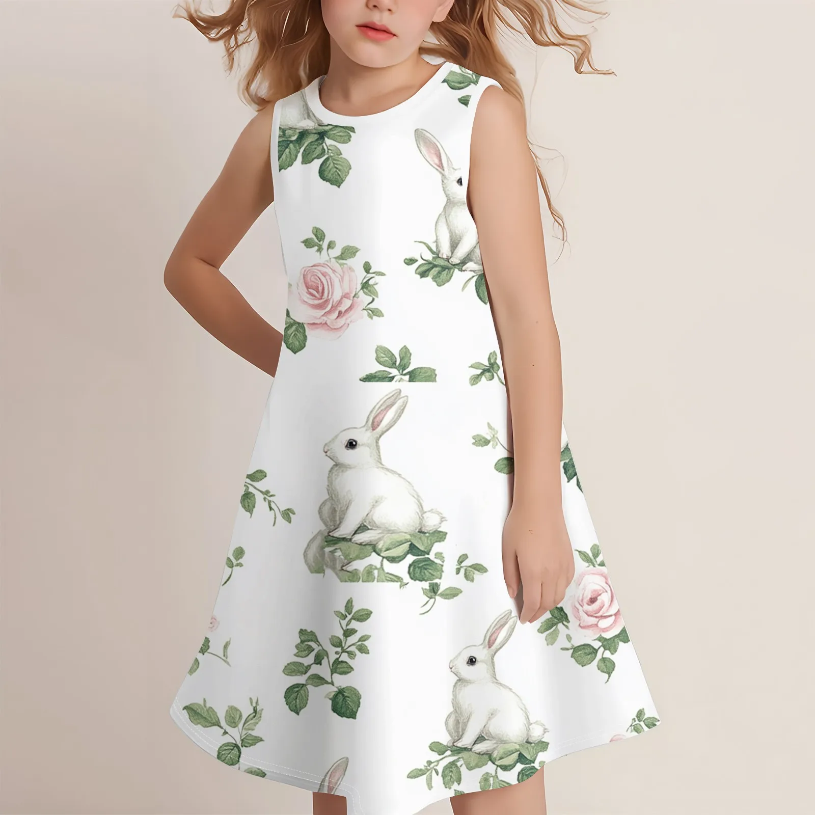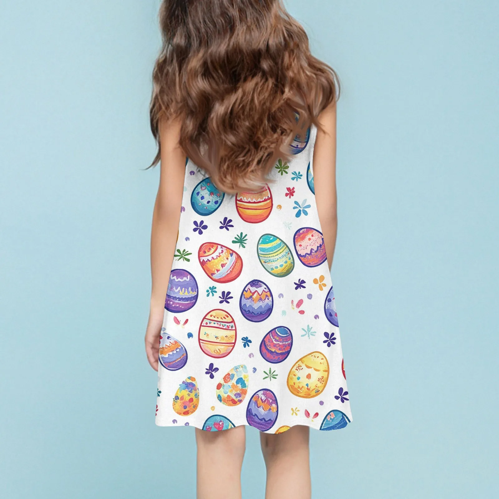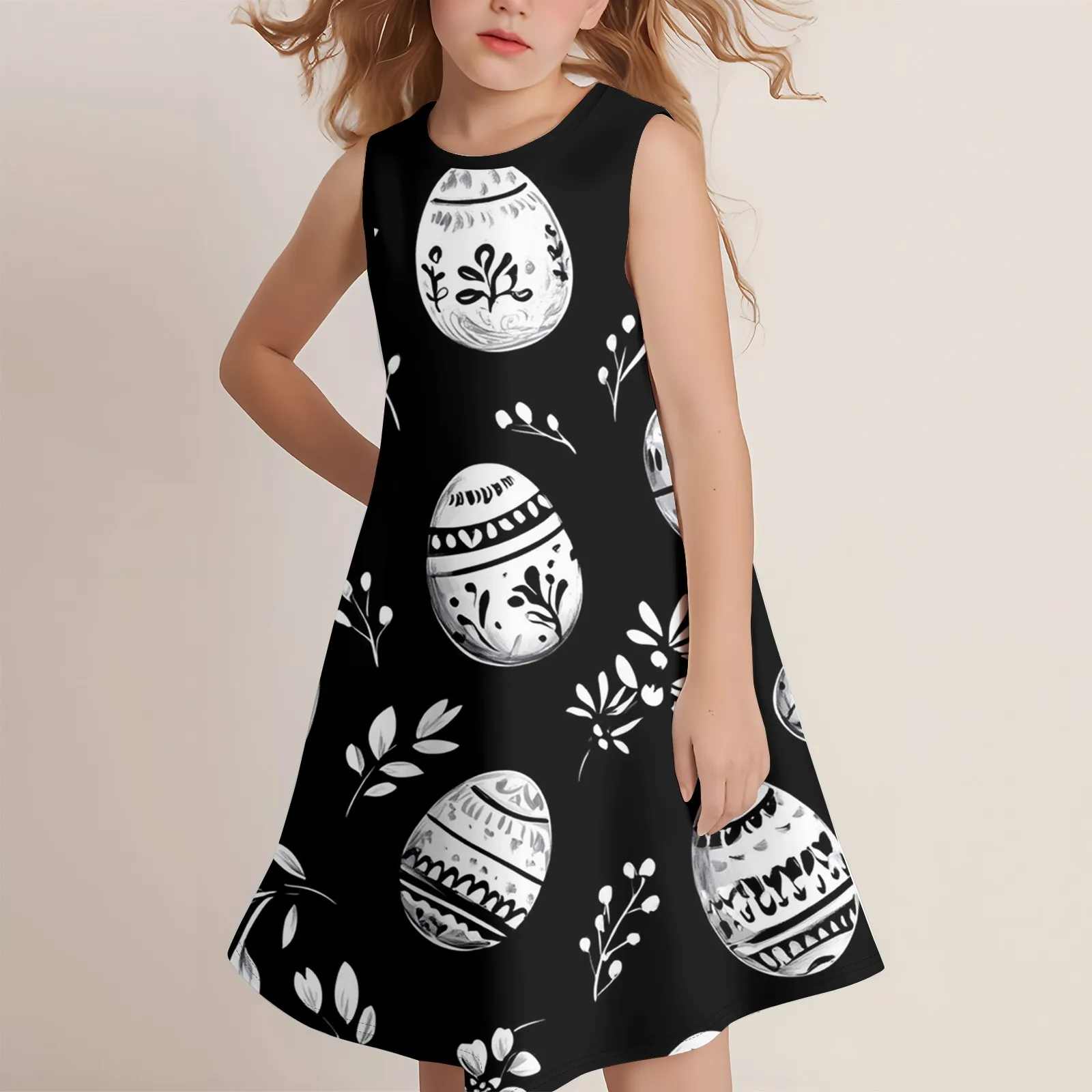 Girls Fashion Casual Sleeveless Round Neck Easter Printed Dress